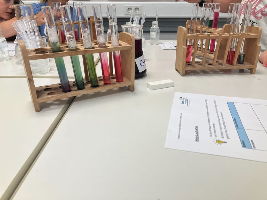 Am 3. Juni war es wieder so weit und 22 junge Nachwuchsforscherinnen konnten in den Bereichen Chemie und Physik reinschnuppern. Die Grundschülerinnen konnten Postkarten zum Leuchten bringen, mit Rotkohlsaft einen bunten Regenbogen herstellen oder mit einfachen Mitteln wie einer Büroklammer und einem Korken einen Kompass bauen. Die Grundschülerinnen erhielten am Ende eine Auszeichnung zur Nachwuchsforscherin. Auch nächstes Jahr werden wir den Nachmittag wieder anbieten. Diesmal mit einem erweiterten Programm, da die Warteliste der Interessenten nicht enden wollte! Wir finden es toll, dass das Interesse an Naturwissenschaften so groß ist und zeigt ein Mal mehr: Mädchen und MINT: Das passt!