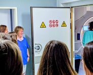 In diesem Jahr startete das MINT-Projekt mit der Vorstellung eines neuen Berufs. Im Sana Klinikum Offenbach durften unsere Schülerinnen den Beruf der Medizinischen Technologin für Radiologie (MTR) kennenlernen. MTRs befassen sich mit der Durchführung medizinischer Bildgebung - Röntgen, CT oder MRT - sowie der Strahlentherapie und Nuklearmedizin.